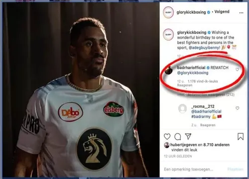 Badr Hari in Benjamin Adegbuyi zijn meerdere erkennen. Via een knock-out verloor hij de pot, en sindsdien hebben we weinig vernomen over zijn kickboksaspiraties. Tot nu. Want in de comments onder een Instagram-post van GLORY maakt hij zijn wens kenbaar: